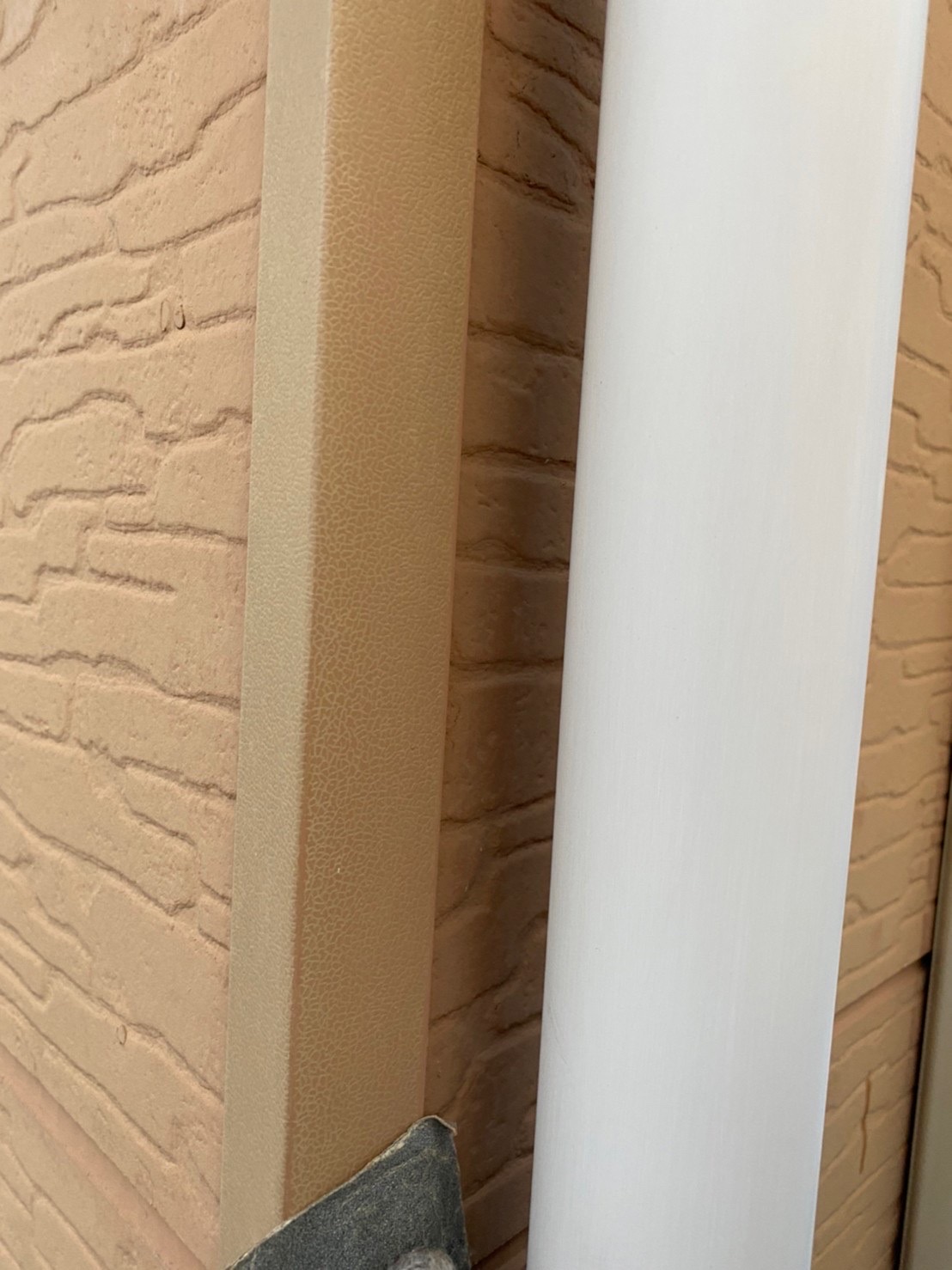 こんにちは。リカラ外壁塗装店です。今回は姫路市のM様邸での外壁の帯板の塗装の様子です。帯板とは1階と2階の境についている装飾材のことです。材質の違いもあり普通の外壁部分より傷んでいることが多いです。今
